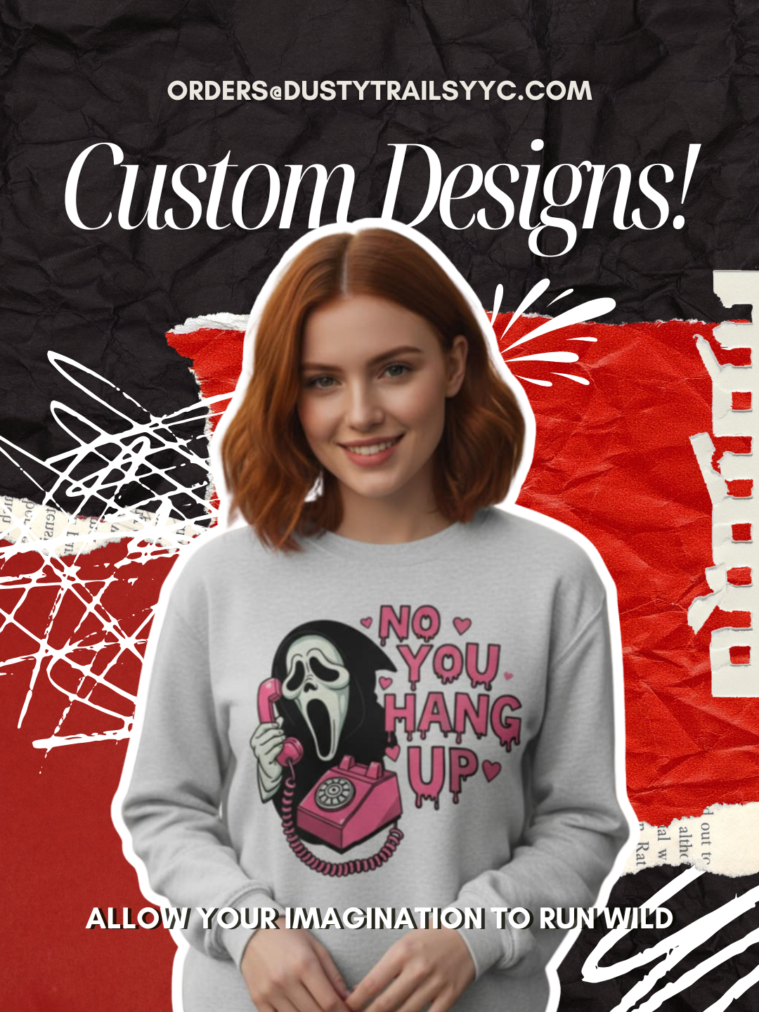 Our website’s under construction, but you can still get your custom hoodies, tees, and more. 💕